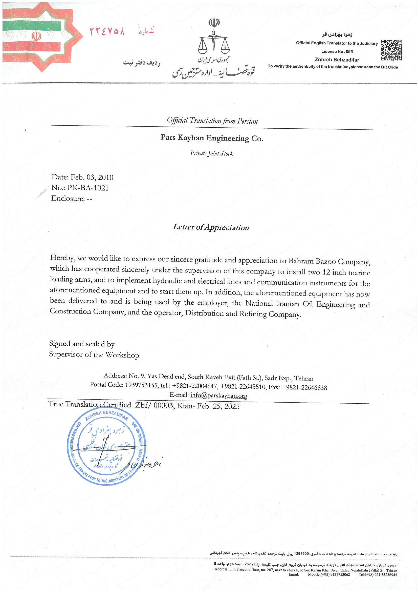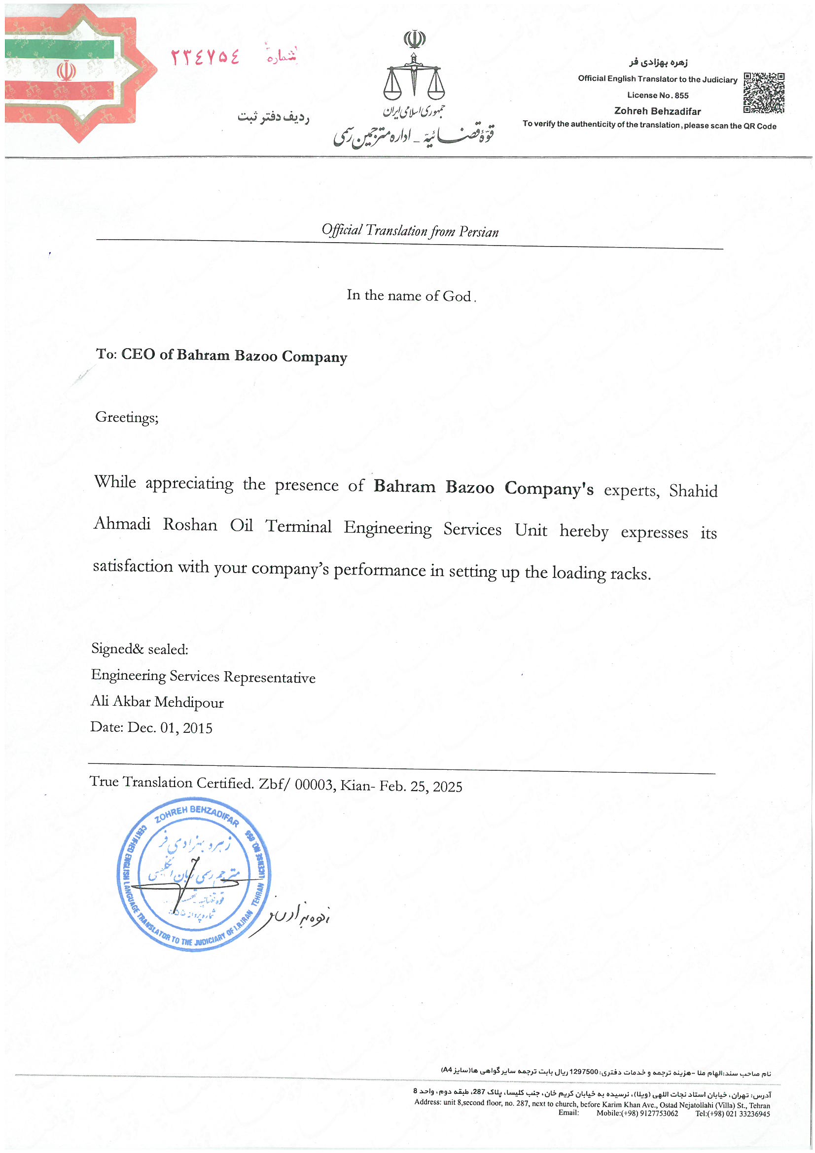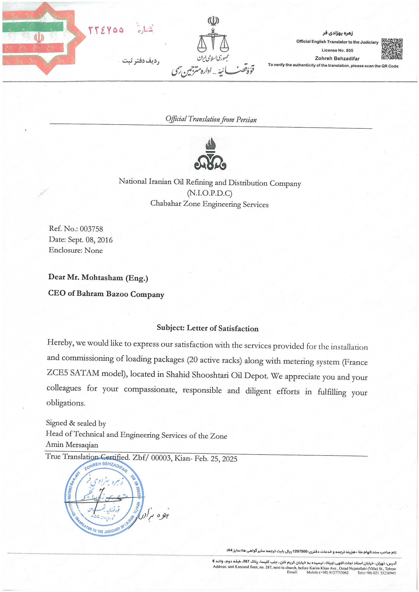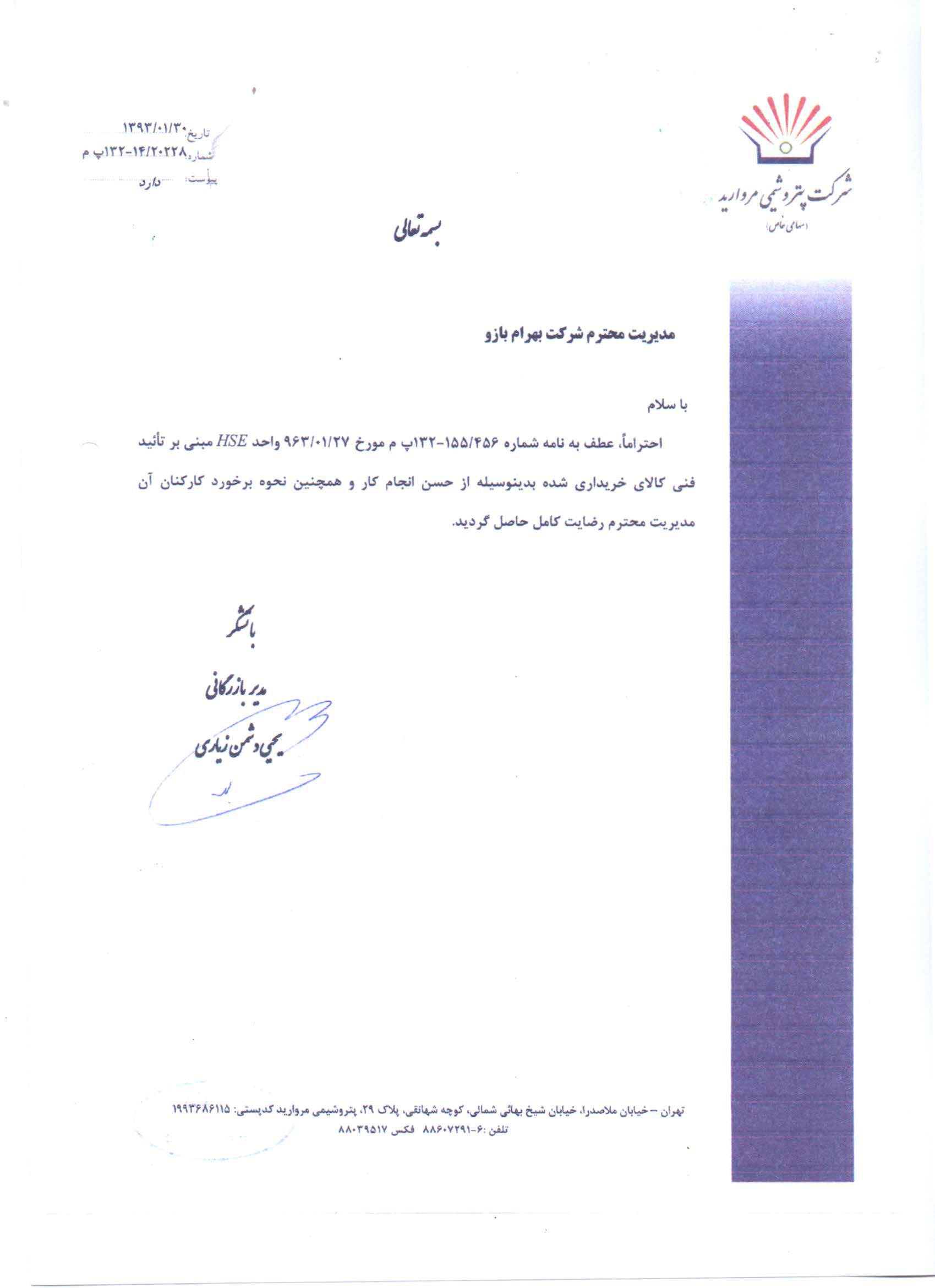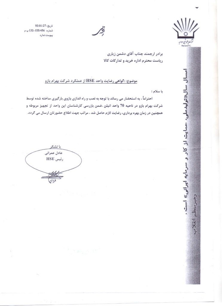 Workshop Office: No.43 – Sanat St. – Ghods City – Tehran – Iran