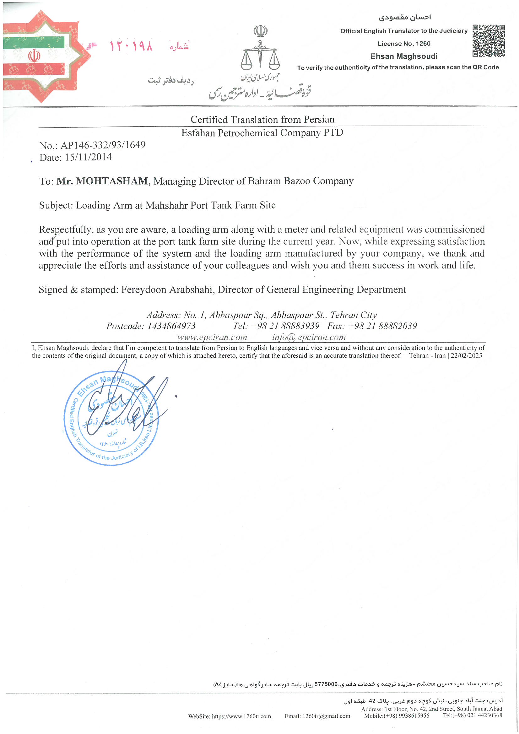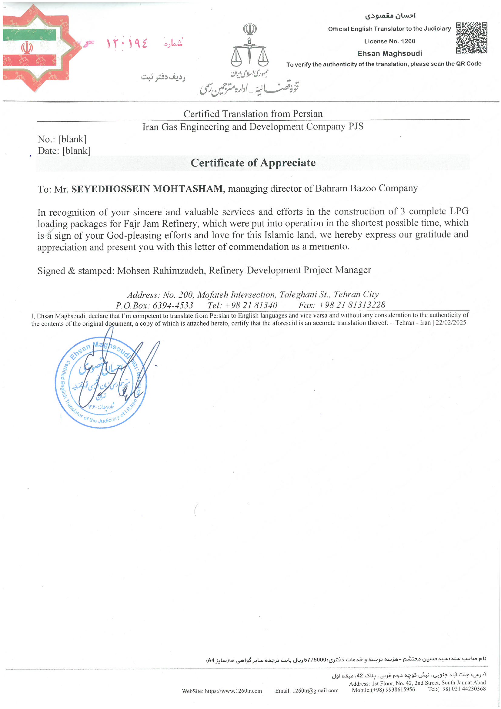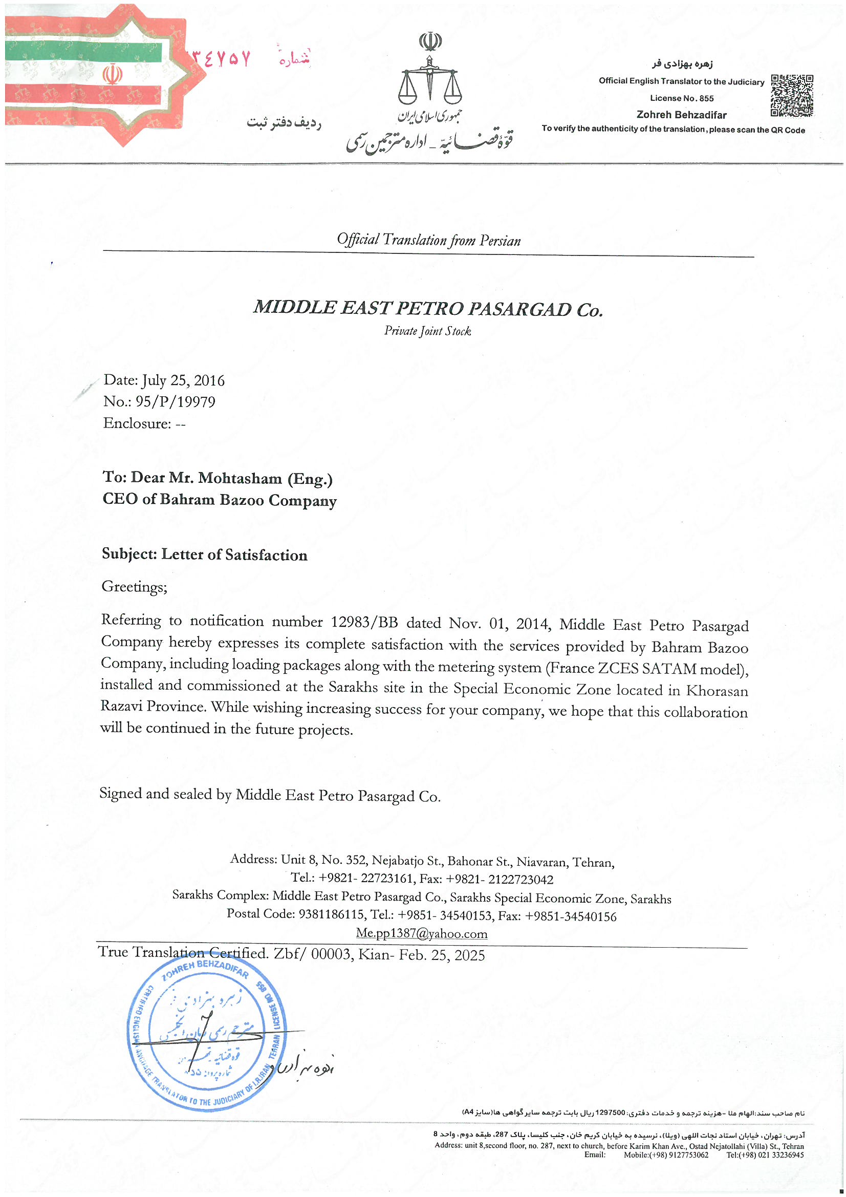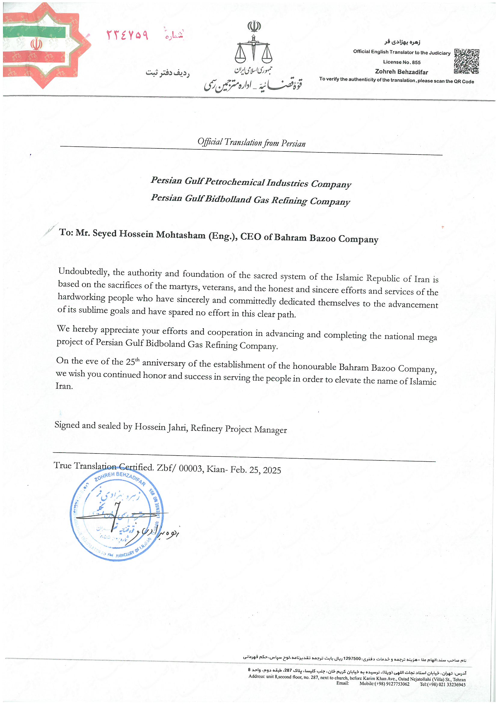 Workshop Office: No.43 – Sanat St. – Ghods City – Tehran – Iran