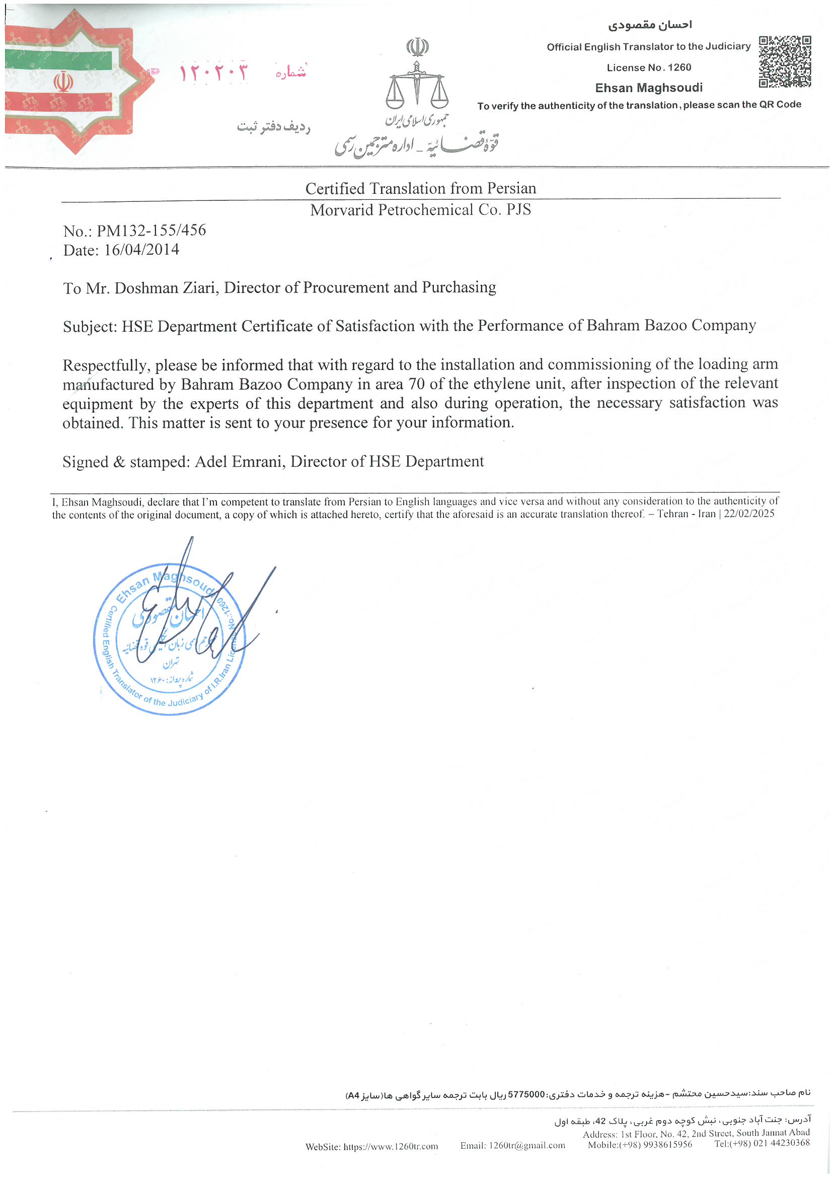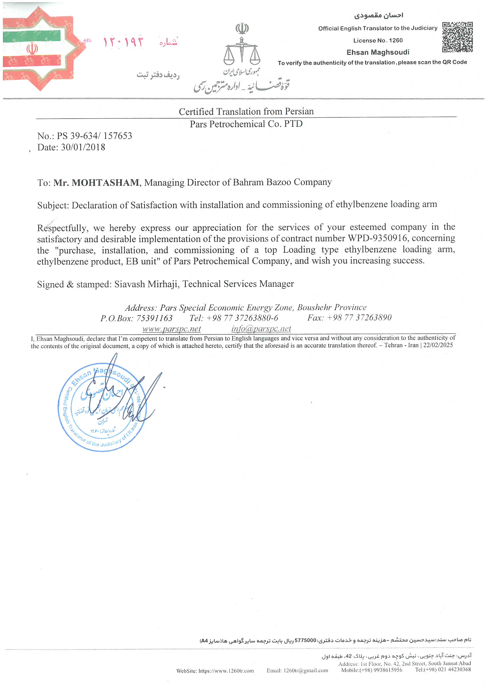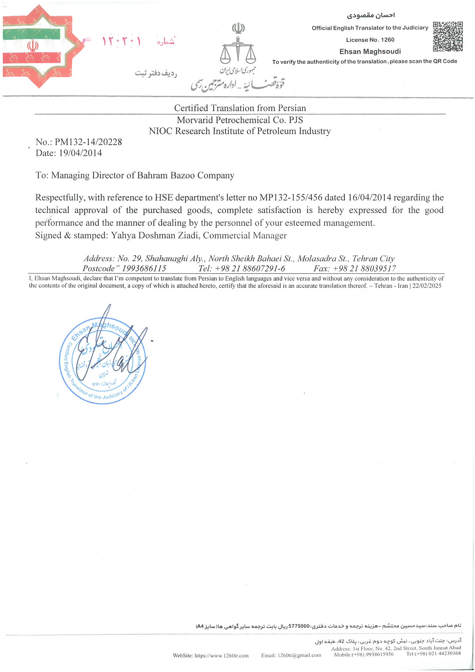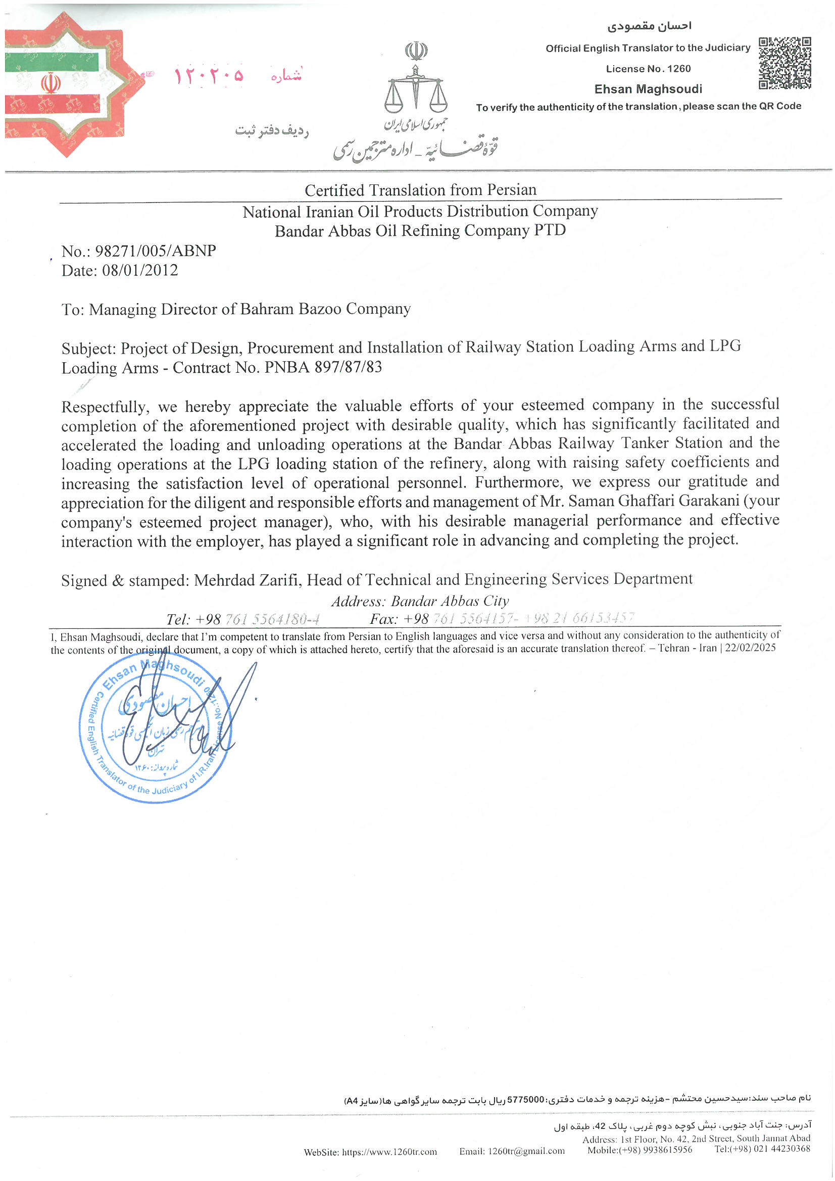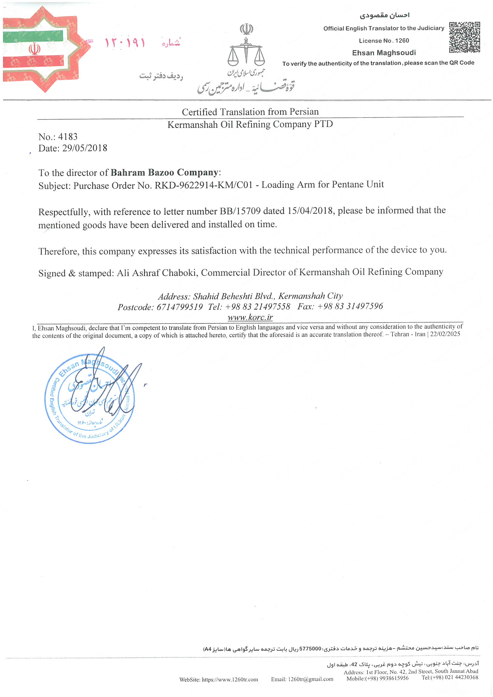 Workshop Office: No.43 – Sanat St. – Ghods City – Tehran – Iran