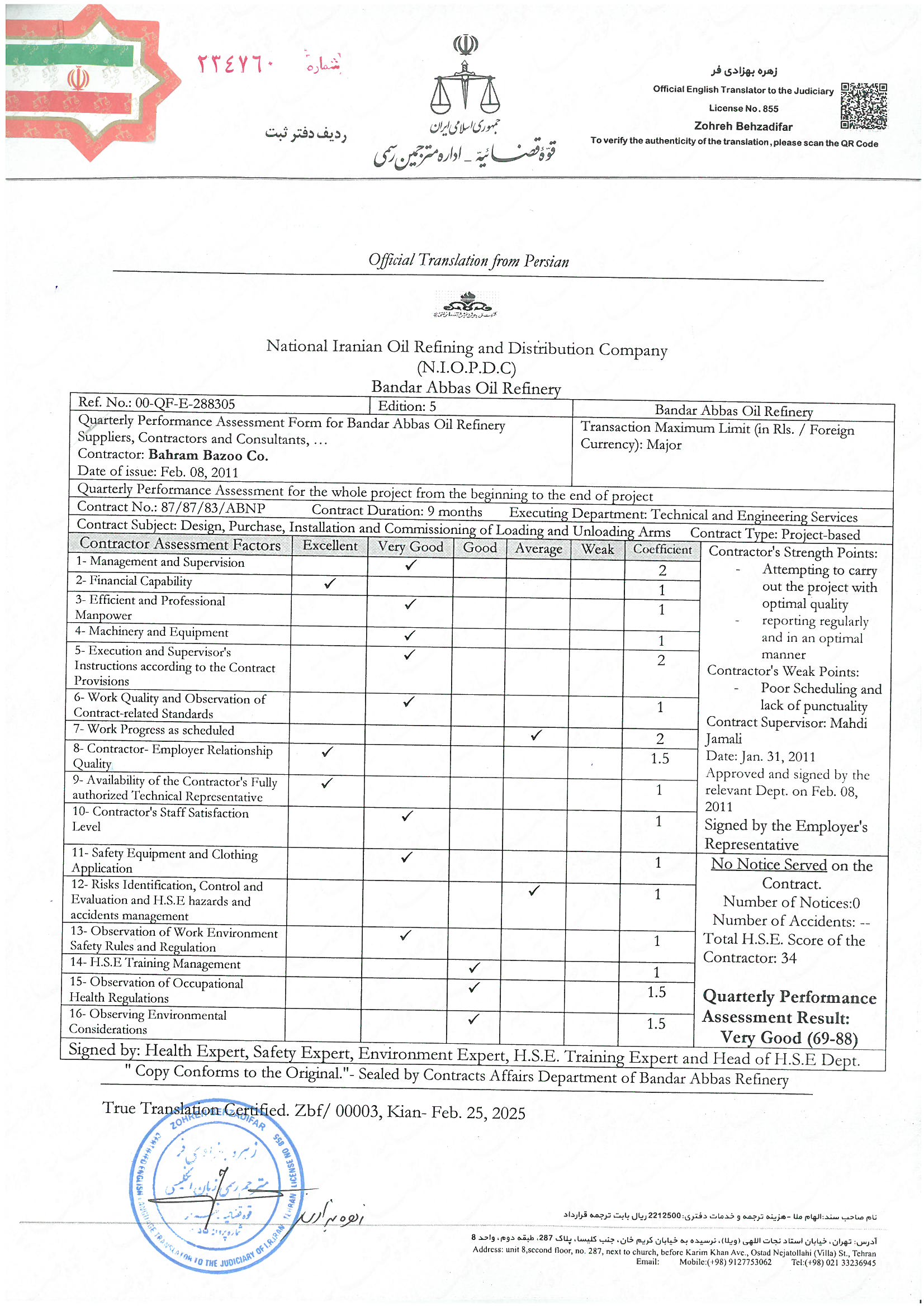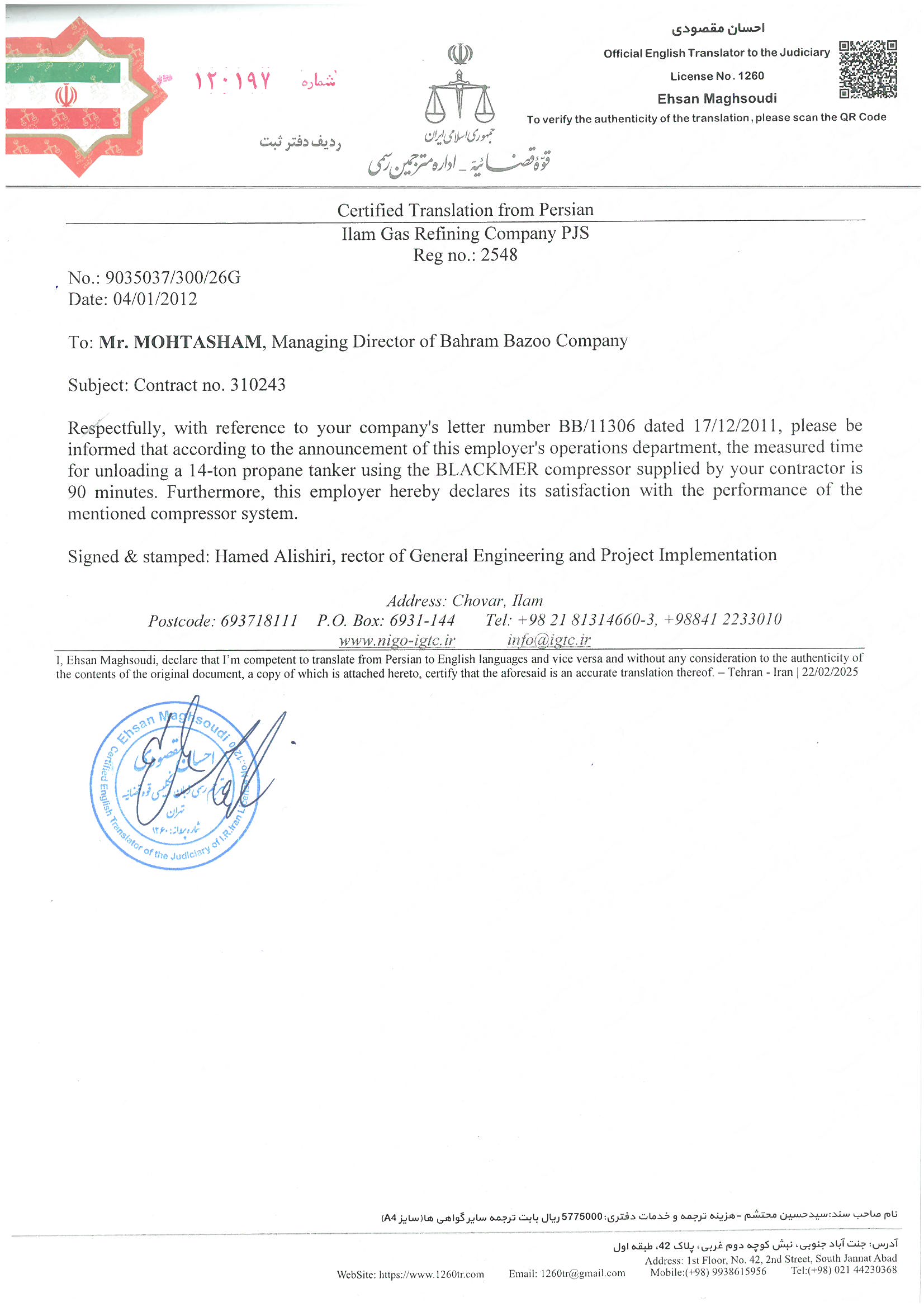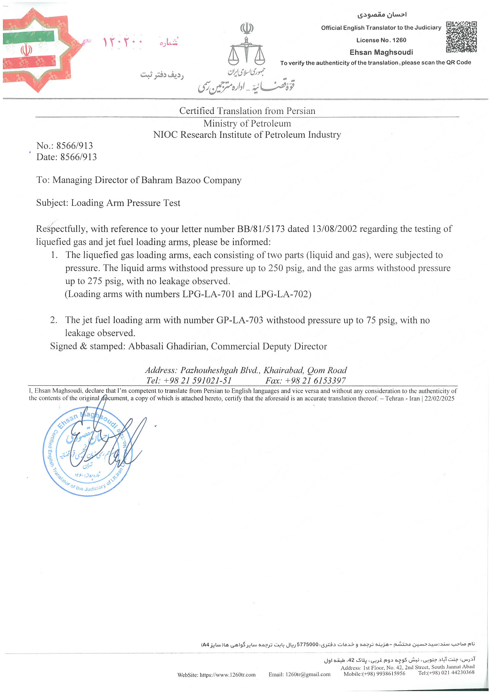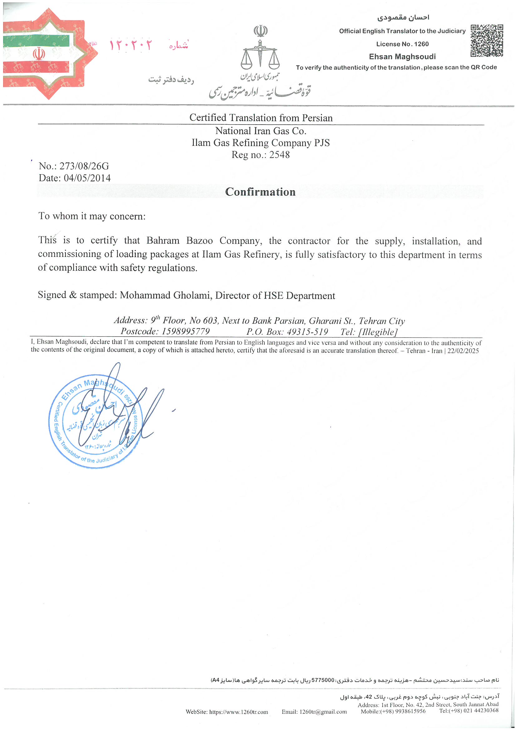 Workshop Office: No.43 – Sanat St. – Ghods City – Tehran – Iran